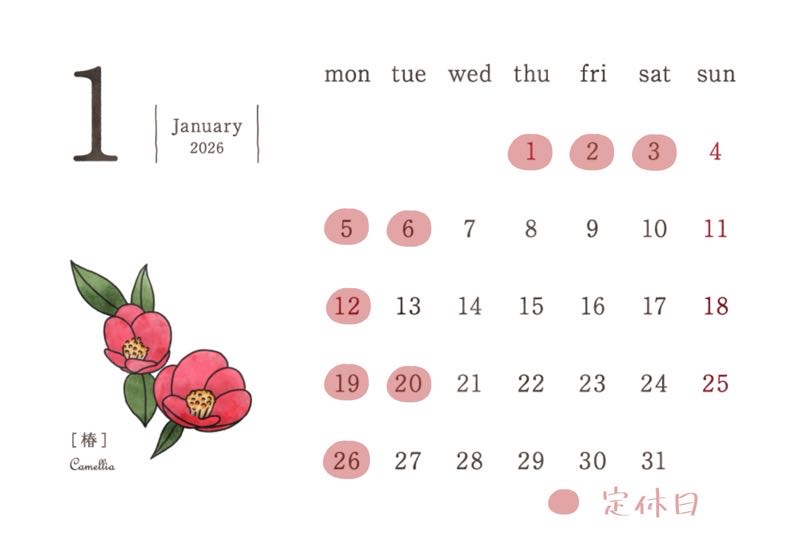 1月は少し変動しておりますので、ご予約の際はお気をつけくださいませ😌