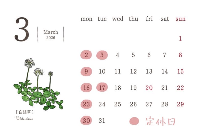 3月の定休日のお知らせ