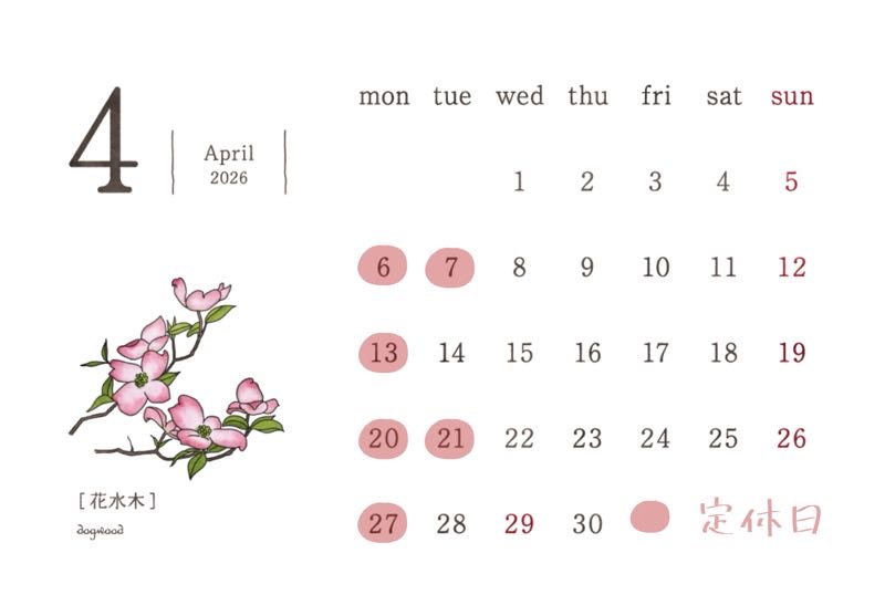 4月の定休日のお知らせ